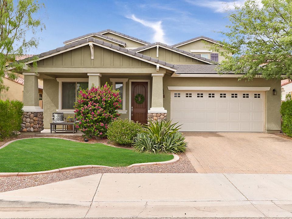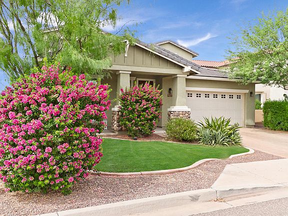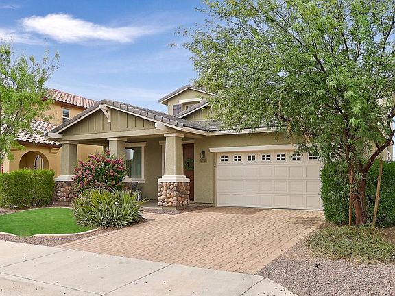 Beautiful farmhouse inspired home in gated community of Rock Springs. Nestled in a quiet cul-de-sac this spacious retreat features 5 bedroom, 3.5 bath and a loft. Loft can be easily used as a family room, playroom or office. The upgraded kitchen is tastefully designed with breakfast bar island, granite counter tops, custom flooring, large walk in pantry and butlers pantry with open shelving. Your ground floor master has it's own extra-large bath with soaking tub and shower, private toilet area, and large walk-in closet. closet.Upstairs you will find four spacious bedrooms each with their own walk in closets as well as a Jack and Jill bathroom. Two of the bedrooms capture a great view of the nearby desert preserve. Backyard oasis includes covered patio, artificial grass, pavers, firepit and room for a pool. This gem will not last long on the market. Come and see it today!