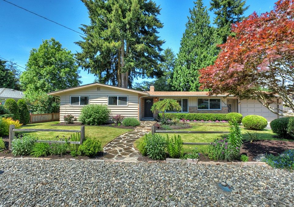 Bright and beautifully updated 1950's rambler with vaulted ceilings, gas fireplace, updated kitchen, 3 beds + family room- newly finished hardwood floors, granite and slate accents, large double garage with shop space and an oasis in the back yard. Large deck w/ sprinkler system for pots, gazebo with hot tub, fire pit, and raised planting beds- additional boat/ rv parking, and established planting throughout this large lot- quiet street but close to I-5 or all that downtown Edmonds offers!