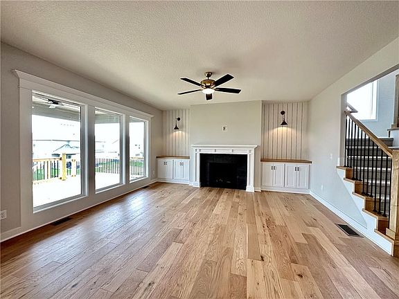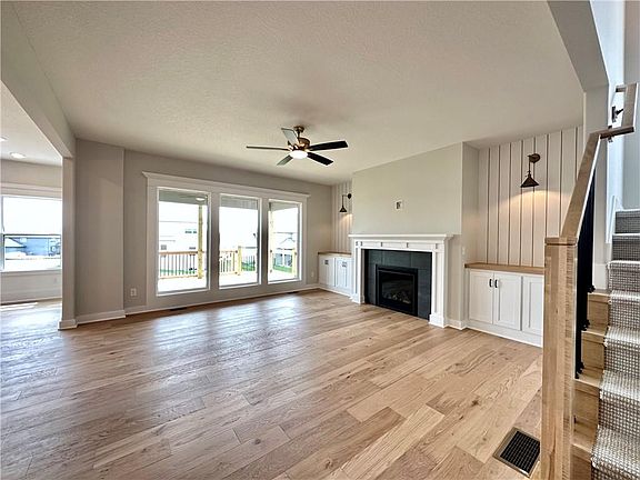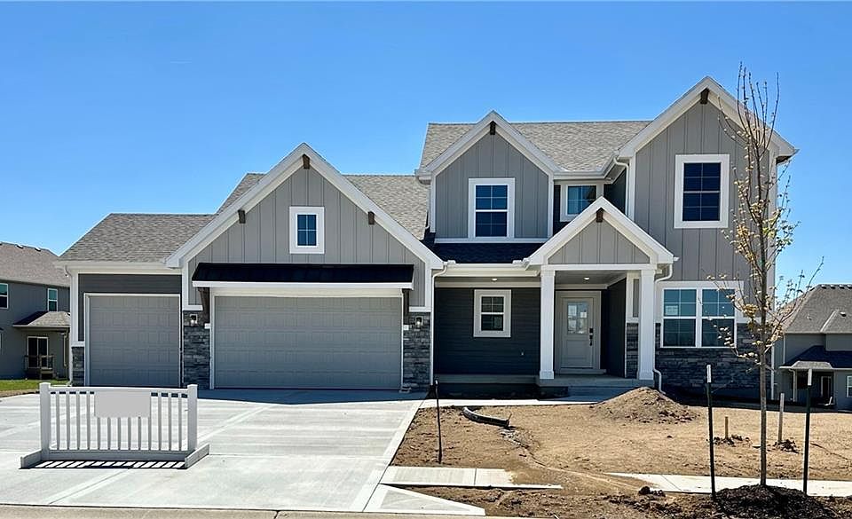 Finishing touches happening NOW! The Hawthorn II by Hearthside Homes is such a great floor plan! The main floor primary bedroom has split bathroom vanities and a huge shower. A separate flex space perfect for an office/den/playroom. The kitchen shows off an island and looks out to the great room and dining area, which opens to the covered deck and steps leading down to the large patio and backyard. My favorite is the massive laundry room/family entry located just steps from the garage with TONS of space and built-in cabinetry! Upstairs, family members/friends will love the spacious bedrooms with extra-large closets, 2 full bathrooms, and a large LOFT AREA perfect for sleepovers, gaming, or additional study space. Lots of space in the unfinished basement for storage or future finish. This home sits on a walkout lot in the highly desirable Benson Place Landing! Additional features include a sprinkler system, an electric car charger in the garage, and a Ring Doorbell. In addition to the 12-month builder warranty, Hearthside Homes goes above the industry standard by hiring impartial professionals to perform thorough inspections on their completed homes. This comprehensive assessment includes cosmetic and mechanical inspections, a sewer line inspection, and HVAC duct cleaning. Benson Place residents enjoy an abundance of amenities including two community swimming pools, children’s splash park, fishing lake, playground, ample green space, scenic nature trails. Close proximity to major highways and interstates allows for easy access to downtown Kansas City, the new Kansas City International Airport, and several of the area’s top shopping and entertainment centers. The estimated completion is the end of April 2023. Taxes, sqft, room sizes, approx.