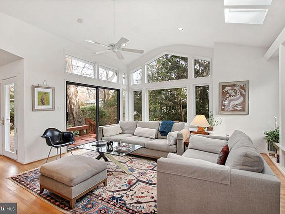 You will be "hooked" from the moment you step inside! A spectacular open floor plan in the sought-after Mid Century Modern Neighborhood of Carderock Springs. An expanded Clubview Model, rarely available... 4 level , 4 BR, 4BA , 1 car garage home with perfect flow for entertaining and family living. The main level offers cathedral ceilings, skylights and enormous windows filtering natural light and nature through out the kitchen, living room, dining room and family room addition. The spectacular addition was designed by renowned Carderock local architect Soe Lin & Associates, Both dining room and family room provide access to the patio and deck overlooking a private, mature, and lovingly maintained landscaped garden and yard. Floating staircase to the upper and lower level. The upper level includes an en suite primary bedroom, a hall bathroom serving 2 other bedrooms.. The lower walk out level boasts 9 ft ceilings, an additional family room with glass doors, a small gardening room, and an additional bedroom and bathroom. The basement is partially finished with tile floors and a cedar closet. Walking distance to Carderock SpringsElementary and an easy bike ride to the C&O Canal, parks and restaurants.