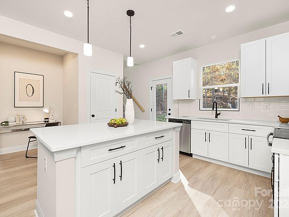 $5,000 credit towards rate buy down and closing costs with use of preferred lender! Move in ready new construction 3 bedroom single family home located in an established subdivision on a private lot surrounded by trees. Steps away from the Toby Creek Greenway & minutes away from UNCC. Open floorplan featuring 9 foot ceilings and luxurious finishes such as quartz countertops, white shaker cabinetry with soft close doors & dovetail drawers and subway tiled backsplash. Turnkey move in ready home perfect for first time buyers and investors. Loaded with upgrades including white oak luxury vinyl plank flooring throughout, 6' Pella windows & doors, stainless steel appliances, black hardware and Moen plumbing fixtures. Primary suite offers huge walk in closet and ensuite bath with shower & dual vanity. Guest bath offers a tub & dual vanity. Complete with a dedicated home office on main, 1 car garage, covered front porch, and rear patio overlooking flat back yard. Builder warranty included.