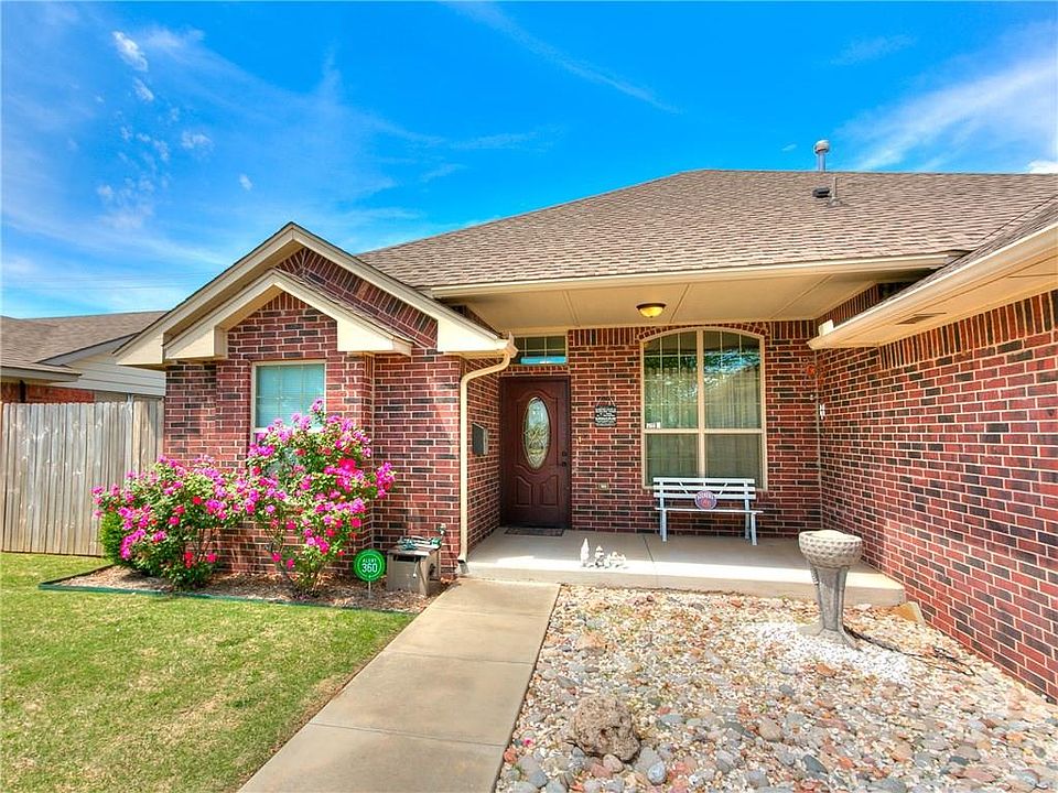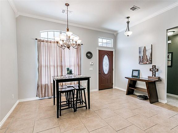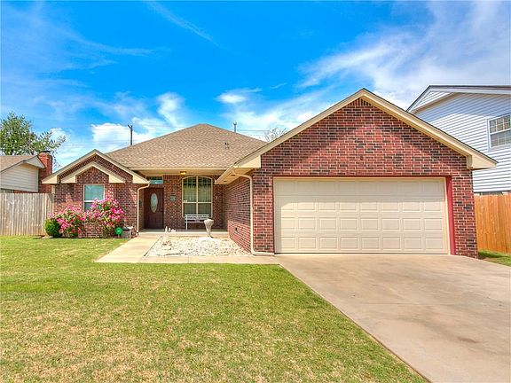 Beautiful 3 bed, 2 bath, 2 car garage open floor plan with high ceilings, crown molding, granite counter tops and custom cabinets in the bathrooms and kitchen. Gas fireplace in the living room. Oversized window in the dining room giving the home plenty of natural light. The kitchen has stainless steel appliances and a gas range. Laundry room with storage. Large master suite includes a master bath with a double vanity, jetted tube, standalone shower, large walkthrough closet. The back sliding glass doors will lead you to a backyard oasis that includes a covered patio, pond, deck with a metal roof perfect for listening to the sounds of the pond and rain. Close to I-240, I-44, OCCC, Will Rogers World Airport. Buyer to verify schools. Motivated Seller bring all offers!