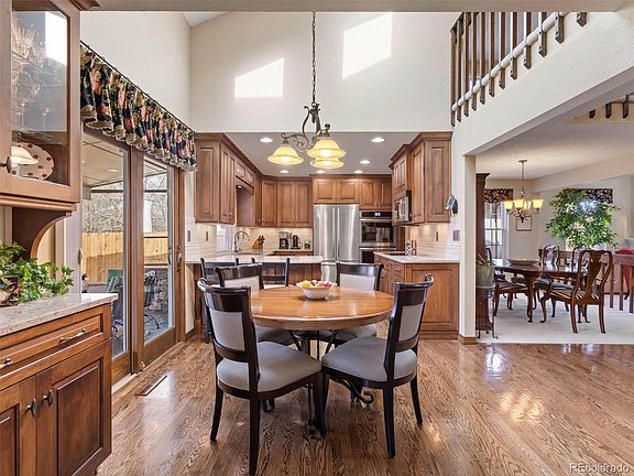 Imagine living in a community with pickle ball, tennis, a fabulous swimming pool with swim team, playgrounds and miles of greenbelt walking paths and the nearby Highline Canal trail system.Charming sun-filled home situated on a fully fenced lot with lovely curb appeal in Littleton's popular Southpark neighborhood. Extensively updated and meticulously maintained, the home features an open concept floor plan, modern design elements, newer windows, six panel solid core doors, Silhouette blinds and gorgeous hardwood flooring. Architectural details include large windows which flood the home in natural light, exposed beams, a generous room layout and soaring ceilings. The gourmet kitchen has been fully renovated and features a breakfast bar, quartz countertops, rich wood cabinetry with crown molding and pull-outs, soft close drawers, tile backsplash and upgraded appliances. Jenn-aire stainless steel appliances include double ovens, induction cooktop, dishwasher, microwave and refrigerator. The Kitchen space brings the outdoors in with a charming pass through window to the outdoor patio dining area, perfect for entertaining. Main level living includes inviting living and dining space with a cozy family room that opens up to the breakfast nook and kitchen. A beautiful upper level primary suite features vaulted ceilings, sunny southern exposure and fully updated bath with an oversized shower and walk-in closet. The home has a purposeful floor plan with two more upper bedrooms and a fourth non-conforming bedroom/study with an open loft. The finished basement features a recreation room with wet bar, 3/4 bath, oversized laundry room, finished storage room and over 400sf of crawlspace storage. The backyard is an entertainers dream and private oasis with a 600sf stamped concrete patio complete with firepit, service bar, built-in cabinet, gas grill and flat yard. Top rated schools, Historic Downtown Littleton and only six blocks to Light Rail.