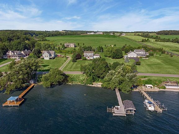 This Cayuga Lake stunner gives you the best of both worlds! A year round 4-5 bedroom home on almost two acres, with a finished lower level AND 154 feet of lake frontage with galvanized steel dock and electric boat hoist! Enjoy amazing views of the lake from the front patio or the 3 seasons enclosed front porch. And NO STEPS to the lake! Entertaining will be a breeze with sliders to a pergola canopy into the back and a front yard perfect for lawn games and, of course, the pristine lake frontage. The extra long 2 car attached garage fits the cars and the lake toys!