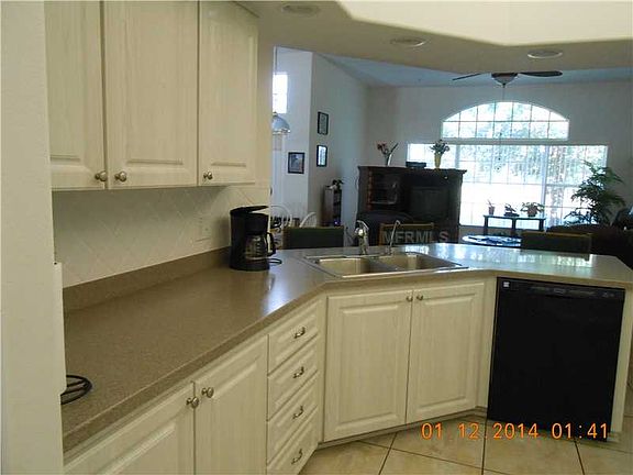 This three/four bedroom, two bath home is located in a golf community of New Port Richey. The layout is very spacious open plan that has cathedral ceilings, ceiling fans, inside utility room and a lot of closet space. It has three bedrooms and a private den that can be used as an office or a 4th bedroom. There is a kitchen nook, formal living room and family/great room. The large lanai looks onto the 18Th Hole of River Ridge Golf Course. If garage space is what you need, this one is an oversized garage big enough for your two cars and golf cart. The master bathroom has dual sinks, separate shower stall and tub. When you walk into the kitchen you'll see the shelving for plants or a favorite collection, tile floors, large counter space for cooking and its light and bright. Appliances included are washer, dryer, compactor, dishwasher, refrigerator, range and water softener. There is an ADT security system, reclaimed irrigation system,(water paid by HOA) screened lanai, sliding doors, and landscape. Flooring is carpeting in the bedrooms, and some of the interior. This is deed restricted and you will receive newsletters each month with all up to date information to make your new home so nice to live in. This is a gated community with golf course, recreational facilities, pool, and fitness center. Room sizes are approximate. The HOA maintains the lawn and shrubs.