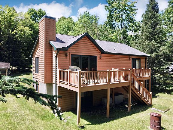 An incredible opportunity awaits w/this exposed Ranch beauty that sits on the shores of Columbus Lake. This gorgeous half log sided exterior home is situated on a no thru street & offers patio doors leading to a deck perfect for taking in the scenic views of the lake while soaking in the serene tranquility. Interior features a spacious eat in Kit that opens to the LR, both boasting stunning wood ceilings. Also find a 1st floor laundry & a MBR w/a walk in closet & a patio door leading to a deck. LL walk out w/ full bath is ready to be finished. Ideal for a Family Room or extra bedrooms. Additional room for all your friends & family w/ sleeping options in the original cottage or in the bonus 3rd car garage/shop that has an upper 3 season sleeping quarters w/ a large deck that leads to the water. Columbus Lake is a full recreation lake where you can enjoy fishing, water sports, boating & swimming. Sellers family has launched their boats on the property. Home Warranty Included.
