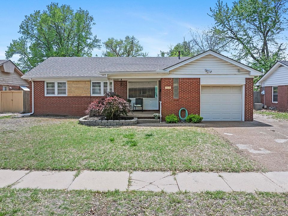 Welcome to 7715 E Clay, a beautifully maintained all-brick home with charm and character. Situated close to shopping and restaurants in East Wichita, this inviting property boasts exceptional curb appeal with its classic brick exterior, mid century modern touches and a newer roof that adds both style and peace of mind. Step onto the spacious, covered front porch—perfect for relaxing with your morning coffee or unwinding in the evening while enjoying the neighborhood’s quiet charm. Inside, you’ll find gorgeous wood floors that add warmth and elegance throughout the main living spaces. The large living room offers an open and airy feel, ideal for both entertaining guests and cozy nights in. With three bedrooms, there’s plenty of space for family, guests, or a home office setup. Whether you're a first-time buyer, looking to downsize, or searching for your next investment, this home is a must-see. Don’t miss your chance to own this East side gem—schedule your showing today!