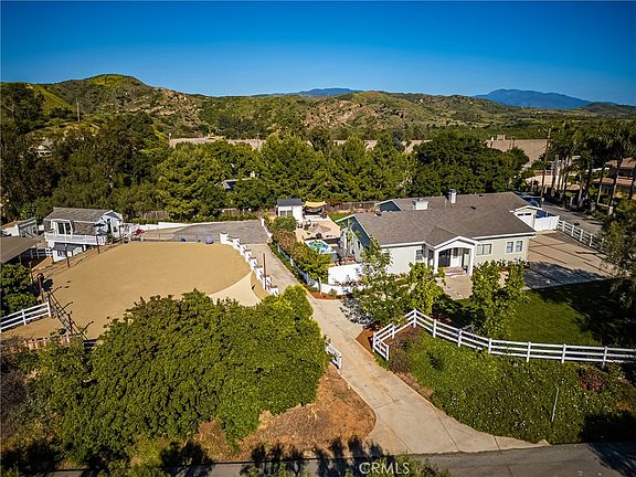 This stunning one-of-a-kind Orange Park Acres’ equestrian property is move-in ready! This single-story home offers 3 bedrooms with separate en-suite bathrooms, a powder bath for guests, a newly remodeled gourmet kitchen with adjacent dining area, a formal living room and a separate family room, all recently remodeled and upgraded. In addition to the spacious and modern home, this property features fully upgraded horse facilities and an additional ADU. Renovated inside and out, the property is framed by lush greenery and bordered by a classic Ranch style white fence. The gleaming wood floors throughout showcase the home’s clean lines and add a touch of classic charm. The updated kitchen blends modern upgrades with a farmhouse touch. Remodeled in 2023, the kitchen lends to all the latest upgrades on your wish list to include a microwave, double electric smart oven, dishwasher, 7 burner stovetop and range hood. The upgrades continue with pendant lighting, an island with a built-in sink, quartz countertops and bar seating for two. Orange Park Acres is famous for its gorgeous backyards and outdoor spaces, and this property does not disappoint. The immediate grounds of the home are straight out of Architectural Digest, with an above-ground swim spa, a fire pit, a sprawling green lawn and a separate “cabana” like house that can be used for entertaining, play or even additional storage. The remodeled studio ADU sits at a distance from the main home with its own private entrance, perfect for independent living. Remodeled in 2022, this ADU offers a large living space, a new full kitchen and a designer bathroom. The highlight of the estate lies in the breathtaking state-of-the-art equestrian facility. The six refurbished horse stalls feature equine mats, automatic waterers, and remote-controlled fans. The equestrian facility includes a 5000 sq. ft. arena, a tack room, a Tuff Shed, a feed room and a grooming area. Just outside the estate are miles of hiking and horse trails that wind through the surrounding countryside. Additional property amenities include the oversized 3-car garage, new Ranch Rail fencing, updated front and backyard landscaping, dedicated indoor laundry room and a garage wired for EV charging. If you are an experienced equestrian and appreciate the beauty of horse country while wanting to live in a gorgeously remodeled home, this remarkable property offers the perfect blend of luxury, comfort and equestrian excellence like no other.