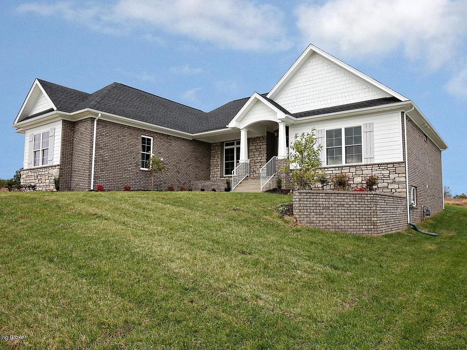 Come visit this very unique home. Great one story plan that has it all! A MUST SEE! This four bedroom, three and a half bath gem has approx. 3260 sq.ft. It's like a model for quality and craftsmanship. It's like a model for convenience and comfort. It's like a model for design and value. This home comes with custom hardwood floors, tiled bathrooms (must see) and laundry room, covered back patio and a private first floor master suite that will surely catch your attention. It has a side entry two car garage and a finished lower level great for entertaining. The lower level also has a wet bar! This home features eye-catching vaulted living room and kitchen ceilings, complete with mantled custom stone fireplace and a spacious eat-in kitchen with a functional island