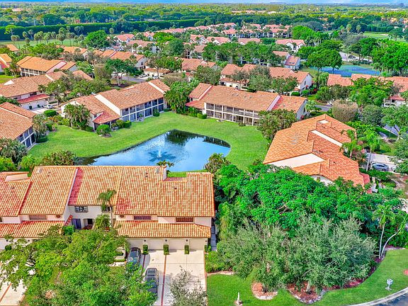 Wow! Mediterranean Style Townhome in the best location in La Mirada in Prestigious Boca Pointe! Private corner wrought iron gate entry leads to this 3 Bedroom, 2.5 Bath Plus a Glass Enclosed Lanai/Patio/Family Room with Lake and Fountain Views & a 2 Car Garage and huge 2 car wide driveway that fits 4 cars. Impact windows and travertine flooring throughout. Vaulted 2 story high ceilings, skylights, & a bright open floor plan. No popcorn ceilings! Expanded living room leads to glass enclosed lanai with tranquil lake and fountain views. Eat in Kitchen with stainless appliances, granite countertops, wood cabinets, travertine flooring and more! Spacious oversized master suite & 2 guest bedrooms are on the 2nd floor. New electric stair lift recently added to staircase is a $15k upgrade! Walk in closets and tons of storage. Large inside laundry/utility room. There is outdoor space to put a barbecue overlooking the lake or the front private patio makes a great place to sit and relax. Boca Pointe CC has optional membership but NOT required. Pet friendly (big dogs are ok). La Mirada's Maintenance fee covers the beautiful man gated entry's, community pool and spa, roof, building insurance, cable, landscaping & water. Boca Pointe is centrally located. Close to amazing shopping & restaurants including Town Center, Mizner Park, FAU, I-95, Turnpike and the Sawgrass. Amazing schools include Del Prado Elementary School, Omni Middle School, & Spanish River Community High School.