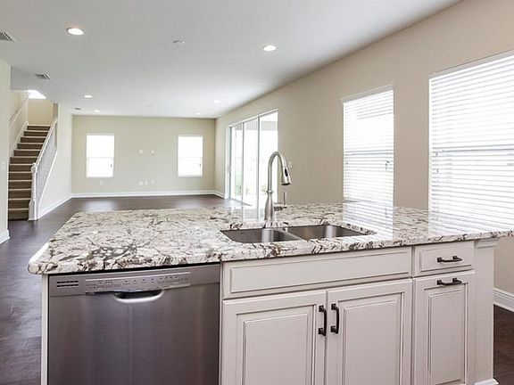 This spacious lake side home is a MUST SEE ! The moment you enter this 3br/3bath your eye is drawn to the water views through the expansive bank of sliding glass doors. This home has a private guest suite with en suite bathroom. The king sized master suite is a true refuge, with large windows overlooking the water and an impressive master bath. The media room has chocolate colored wood floors and French doors, the space can also be used as an office or den. The open floor plan is anchored by a large island and espresso wood cabinets with granite counter tops in the kitchen.