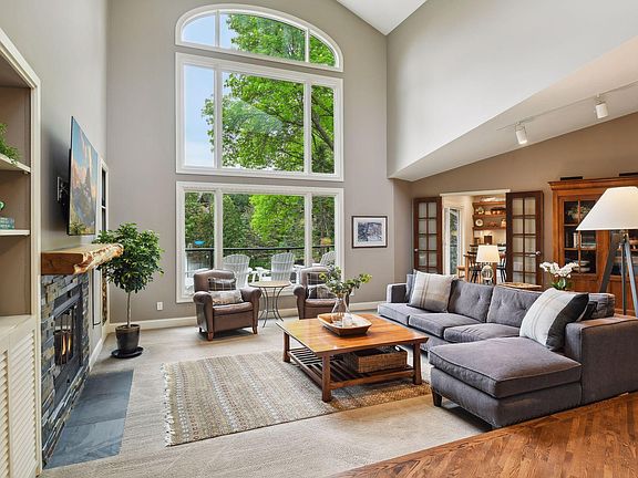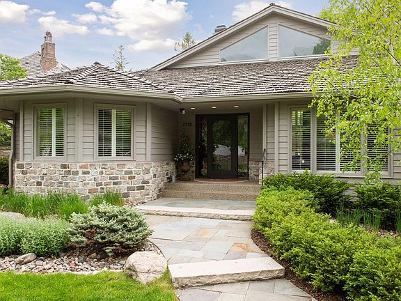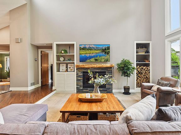Gorgeous walkout rambler with a new kitchen and primary suite. The spacious kitchen features Wolf and Sub-Zero appliances. The primary suite includes a fireplace and a stunning bath, reminiscent of a Robert A.M. Stern design, with a symmetrical marble vanity, free standing tub, and a well-designed shower. The main floor family room has a prominent fireplace, huge windows and vaulted ceilings offering lots of natural light and wonderful views of the pond and fountain. The lower level offers a second family room and fireplace, two additional bedrooms, a second laundry room, and terrific storage. Very well maintained and in move-in condition.