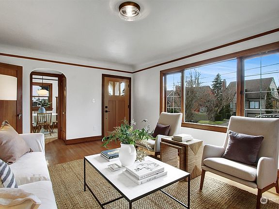 Inviting & updated 1928 Tudor in Ballard's Whittier Heights neighborhood. This light & bright home perfectly blends modern style with original charm. Mahogany molding & trim with beautifully maintained built in cabinets. Features include newer roof, plumbing, electric, new flooring & paint throughout, new kitchen & updated bathrooms. Spacious primary bedroom with adjoining bathroom boasts Olympic & Cascade Mountain views. Large back deck & fully fenced yard are perfect for entertaining. Large garage with plenty of power has been a workshop but could easily add an EV charger. Long driveway with lots of off-street parking. Minutes from all amenities in Phinney Ridge, Greenwood & downtown Ballard. Three blocks to Whittier Elementary school.