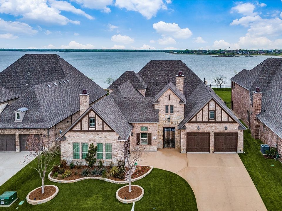 LAKEFRONT PERFECTION! This Stunning estate is situated on a 3rd acre lot in coveted Waterford Point village of The Tribute golf & resort style neighborhood on Lake Lewisville. You'll be greeted by a gated courtyard with fireplace that invites you into a rotunda entry. Dining & living space share a cozy two sided fireplace. Living room is framed with slider doors to bring the lake life in! Kitchen boasts leathered granite countertops (a must see in person), upgraded luxury appliances including farm sink, built in ice maker, double ovens & gas cooktop with griddle. The primary features dual Closet Envy finished closets, baja shower & walk right into attached laundry. The outdoor oasis features oversized extended upper balcony, lower covered patio with 2 outdoor kitchen areas, 5 remote screens, heaters, fireplace, firepit, putting green, lake access, designer lighting & professional landscaping. Whole home features jellyfish lighting, bug misters, whole house generator, PERFECTION to see!