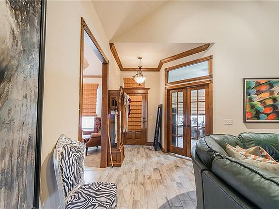 Nestled Down-Hill for added Privacy, this Home has Impeccable Quality Craftsmanship! Beautiful Oak & Pine Crown Molding, Corbel Accents, Granite Counter-tops & window sills, recessed lighting, chandeliers, Pendant lighting & an Executive Office are what you'll find in this grand home! The Living area has a vaulted, wood beamed ceiling, brick fireplace, the formal dining room has a majestic domed ceiling with chandelier. The Kitchen is Ah!Mazing; Rich, Dark Granite counter tops, Stainless steel appliances, plenty of space to entertain or serve, center island with electric, pull-out trash bin, pull-out cutting board, Travertine backsplash, & an Extra Large Pantry. The Utility room features extra storage with a half bathroom. A Sweet Master Suite includes access to covered back porch, Large walk-in closet w/ 12 drawer dresser, shelving, seasonal storage space, jetted oversize tub w/ granite surround, double sinks, separate vanity & shower. In-ground Storm Shelter fits 8-10 People!