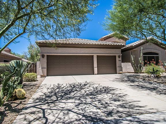 Incredible Grayhawk location! Beautiful updates and finishes throughout this TW Lewis home in the parks at Grayhawk. 4 br 2 ba. Split floor plan, travertine flooring and plantation shutters. Gorgeous kitchen with island overlooking spacious family room. Master features private access to beautiful backyard with solar heated pool & spa. Built in BBQ and fire pit. N/S exposure and low maintenance front yard and backyard. 3 car garage. Quick access to loop 101, walking distance to schools, shopping, dinning, golfing, miles of walking trails and parks
