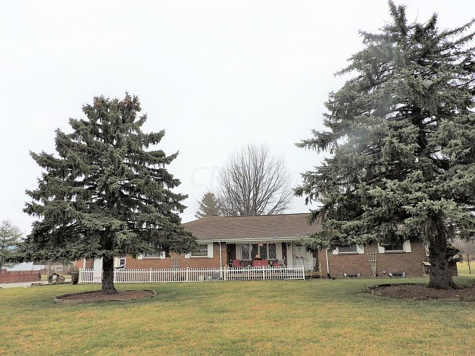 All brick one story with a first floor laundry, 25x20 living room with wood burning stove that opens to the kitchen. LG stainless steel appliances are included. Separate living room/office. Owners bedroom with on suite. Full basement with rec area and second fireplace. Huge deck, and shed, also a 40x30 outbuilding with covered area for storage or awesome grilling area. Park 3-4 cars in detached building, also has an office space/storage area. On .65 acres. Country living but close to the freeway, shopping and restaurants. Hilliard schools Open house Sunday from 2-4!