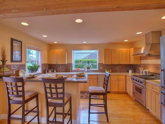 Craftsman style home one block to lake. Views of mountains and lake. Open kitchen with slab granite counters,subway tile backsplash, eating bar,stainless appliances. Adjoining fam. room with gas F/P, wired for entertainment center. Tall ceilings, crown molding.Ash hardwoods. Spacious dining room. Master suite w/ sitting area, gas fireplace and deck. Luxurious mstr bath with double shower. 2 car garage with 600+sq. ft. loft. Fenced backyard w/ super deck. All systems updated!!!