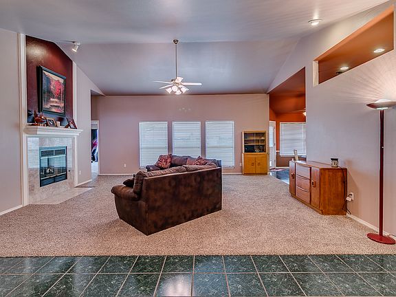 Well cared for attractive home located in an established neighborhood. Tile entry opens to a spacious living area with tall ceilings, fireplace and formal dining area. Upgraded kitchen with stainless steel appliances, a breakfast bar with pendent lights, can lights in ceiling, a matching tile backsplash and high end countertop with built in sink. Sizeable master bedroom, master bath has double vanities, glass shower and a walk in closet. Fenced back yard and an open patio.