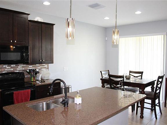 Open and Spacious Destin Model now available in Copperstone. This nearly new 3 bedroom 2 bath has all the upgrades! The home has large tile throughout the living area, kitchen, and baths. The kitchen has upgraded 42 inch cabinets with crown molding, rich looking tile backsplash, quartz counter tops and elegant black appliances to tie it all together. The kitchen opens up into the dining area and great room which is great for entertaining guest. You will enjoy the outdoors from the oversized covered lanai that overlooks the pond. The master bedroom is large and has quartz tops with dual sinks and beautiful hard wood cabinets. The 2nd bedroom has brand new carpet and the 3rd bedroom boasts dark laminate floors that give it a nice warm feeling, perfect office space as well. Copperstone has wonderful amenities including: gated community, 2 community pools, recreation club house with pool table and fitness room, playgrounds, tennis and basketball courts. Copperstone is also located near schools, major roadways, and shopping.