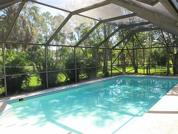 Best priced home in Palm Beach Country Estates! CBS house is a four bedroom two bath home. The new shingle roof was put on in Jan. 2018 with new pool screens. The screened pool area includes 700 square foot of roof covered patio. Interior of house is a split plan with master bedroom on the east end and three other bedrooms to the west; three walk in closets. Master bedroom, dinning room, rec room all open to the pool area. Living room, dinning room and kitchen have high ceilings. Entry area opens to living room or recreation room. Paved drive and full two+ car garage. Front yard is fenced. City water is hooked up. Large shed near main house. Hurricane shutters for windows have been installed. House backs up to a canal. Street is paved, almost complete. Very private location.