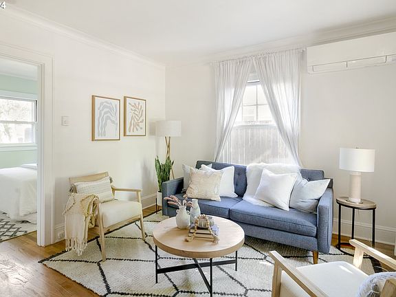 Framed by maple trees and tucked in a quiet pocket away from the hustle and bustle, welcome home to the sweetest vintage cottage! The south-facing living area has lovely hardwood floors and an efficient heat pump to keep you cozy through the winter, and cool in summer. Large closet in the bedroom keeps all your things organized and out of sight. One full bathroom with a tub/shower combo and a touch of character with a vintage built-in medicine cabinet. The heart of this home is the bright kitchen with ample counter space and cabinet storage. Seamlessly extend your living space by opening the French doors to the covered back deck. The unfinished basement already has an egress window, should you wish to add a second bedroom down the line. The large backyard is complete with raised beds and your very own pear tree. It's entirely fenced and feels completely private—plenty of room for a hot tub or sauna. Easy access to Mt. Tabor and 205. Bike score 97! [Home Energy Score = 10. HES Report at https://rpt.greenbuildingregistry.com/hes/OR10233422]