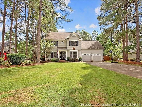 10 mins from Ft Bragg! NO city taxes! This 4 bdrm home has been pressure washed, fence stained, landscaping refreshed, new garden bed, carpets & house professionally cleaned & septic pumped. Upon entering; stunning hardwood floors & wainscotting in foyer area. To the left- office w/ built-ins via French doors & formal dining w/chair railing to the right. Crown molding throughout 1st floor. Great rm w/new carpet, accent wall & stunning fireplace. Kitchen w/white cabinets, gleaming countertops, new fridge, island, pantry w/countertop, light & outlets! Window by kitchen sink overlooks backyard! Owner suite upstairs w/upgraded bath, jetted tub & walk-in closet. Jack & Jill w/upgraded bath also! Bonus rm/4th bdrm w/laminate just off garage offers privacy. Bedrooms have ceiling fans. Home has ample storage! Garage; epoxy floor, built in cabinets, shelving, sprinkler box, mirrors & utility sink. Relax on Screened porch/lawn & enjoy flowering trees and tranquility! Oversized gates to backyard!