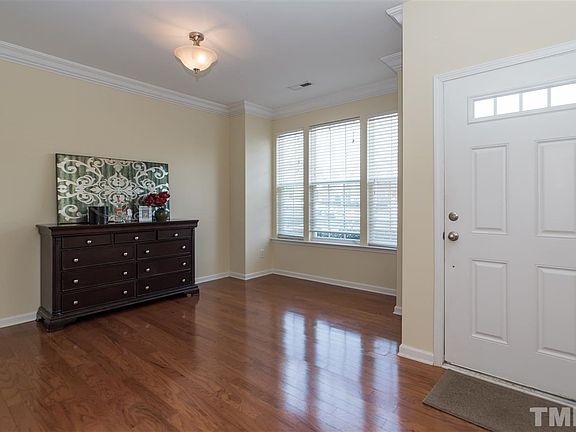 WOW! This is it! Near I-40/540/RTP & RDU. Gorgeous Brier Creek Townhome features hardwoods, BRAND NEW CARPET, NEW INTERIOR PAINT, SEPARATE DR, crown molding, gas fireplace w/marble hearth, solid surface ctrs, extended bar, black appliance package, tiled flrs in baths and kitchen, ceiling fans, vaulted master bdrm w/walk in closet & garden tub. Large secondary bdrm w/private bath. Private back patio w/ wooded lot/views. Security System. Pool & Clubhouse community.