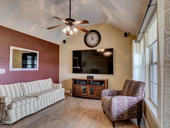 Perfect spot outside of town, well maintained, tile floor in main areas, granite countertops, vaulted ceilings, office with half bath, master with shower & jetted tub, walk in closet, covered screened in back deck, concrete patio in back, beautiful flowers/landscaping.
