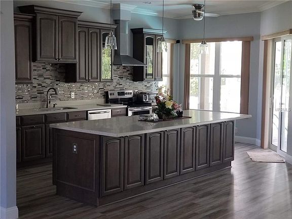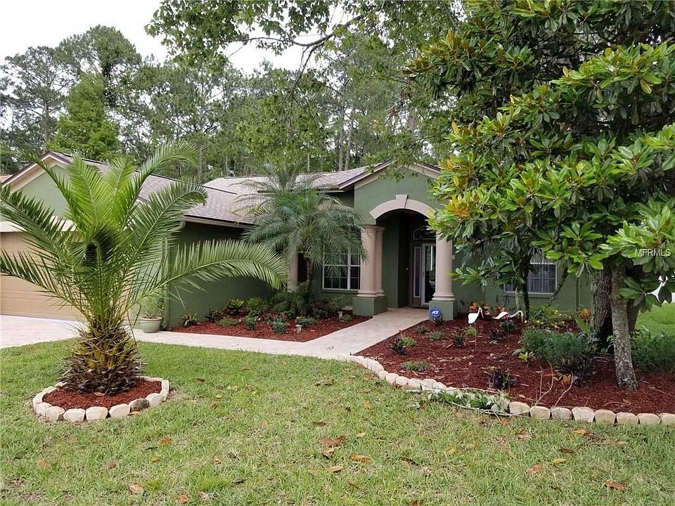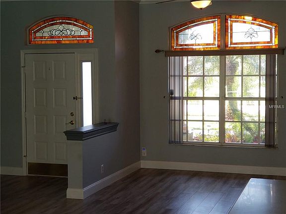 Beautiful home in Rosewood at River Ridge . open floor plan of this 1680 sq.ft. 3 bed, 2 bath home features 10' ceilings, tile floors throughout. From the moment you walk in you will notice an abundance of natural lighting from all of the over sized windows and sliding glass doors. The kitchen recently remodeled features new stainless steel appliances, quartz counter tops and a breakfast bar that overlooks the living room with great views of the back yard and large screened in lanai and pool. split floor plan separates the master from the guest rooms. The large master bedroom has sliding glass doors leading out to the back yard, a generous walk in closets and a beautiful master bath with upgraded vessel sink, garden tub, private water closet, walk in shower with high end fixtures. The two extra bedrooms are located on the other side of the house, . The second bathroom is also updated and equipped with high end fixtures. The beautiful screened in pool and lush back yard oasis is full of palm bushes, shade trees to relax and enjoy nature.conservation lot no rear neighbors Don't miss out, this home will not last.Perfection!