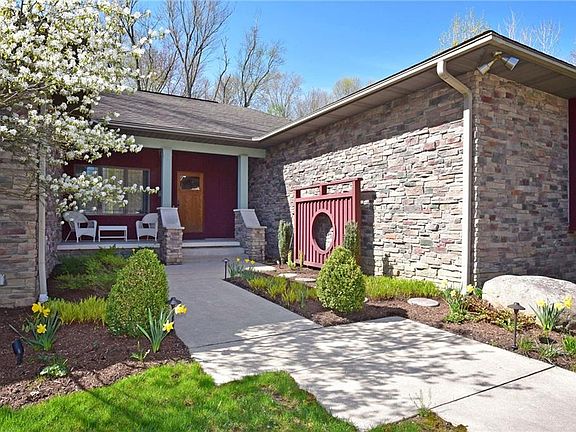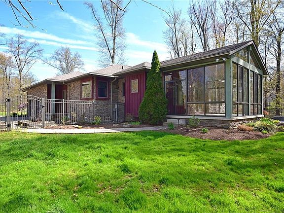 Wonderful and spacious custom-built Prairie-style ranch home in Jackson's highly sought after Wexford Estates neighborhood. Beautiful stone exterior, landscaping, private treed lot, back & side porches, patios & pergola. Inside you'll find sold oak interior doors, woodwork, floors and trim with exquisite architectural details along with numerous sun tunnel light collectors that bring natural light into the home. Numerous built-ins, work spaces, pocket doors and storage throughout. Authentic Arroyo Craftsman Style mica/stained glass lighting, recessed lighting & sconces provide plenty of light and accents. A fully-applianced & large eat-in kitchen with designer custom glass, oak cabinets, pantry and built-in seating. The vaulted great room with stone fireplace & raised hearth is open to the lovely dining room. Enjoy gorgeous views of the private wooded, partially fenced back yard from the master suite that features large walk-in closet & convenient double vanity. Two additional bedrooms with large walk-in closets. Fully windowed sun room with cathedral ceiling overlooking back yard and patio with fire pit and custom water feature. A massive laundry room/utility room and private office complete the first floor. The full, 13-course basement includes recreation room/guest room with full bath, workshop area, storage and has been recently waterproofed. Large garage with steps to basement, utility sink and new openers. Lots of parking and additional convenient circular driveway.
