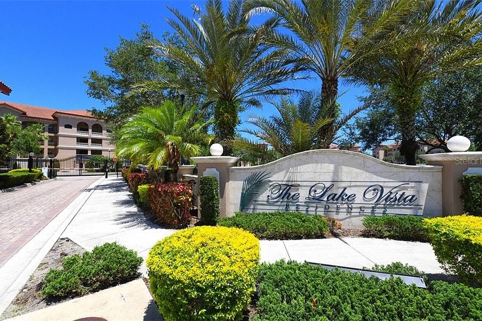 Centrally poised to enjoy the amenities, shopping & recreation of the No. 2 bestselling master planned community in the nation, this three-bedroom condominium at The Lake Vista Residences exudes serene comfort & gracious living. ELEGANT TURNKEY FURNISHED LAKE VISTA CONDO AND ALMOST ALL FURNISHINGS ARE BRAND NEW including kitchen items & bath linens, making it a superb, seasonal home-away-from-home or investment property. Step inside to the entry foyer, outfitted with tile floors, high tray ceilings & crown molding. Recently repainted with a soft, neutral hue & new carpet, enjoy everyday living & entertaining with ease as the open floor plan extends from the kitchen to the dining & living rooms. Bring home farm-to-table produce from The Market & prepare a healthy meal in the well-quipped kitchen with granite surfaces, plenty of counter space & breakfast bar. Privately situated with a split floor plan, the master suite steps out onto the screened lanai & boasts a spacious spa-like master bath with soaking tub. Two storage units provide space for your beach umbrellas and fishing gear with no CDD fees. Amenities abound with a resort-style clubhouse, fitness center & lakefront heated pool & spa. Walk with ease to Lakewood Ranch Main Street, adored as a slice of Americana with a Rodeo Drive twist, or hop in your car & in five minutes, you'll be at University Town Center or Nathan Benderson Park. Discover the nearby beauty of championship golf courses & world-class white-sand beaches.