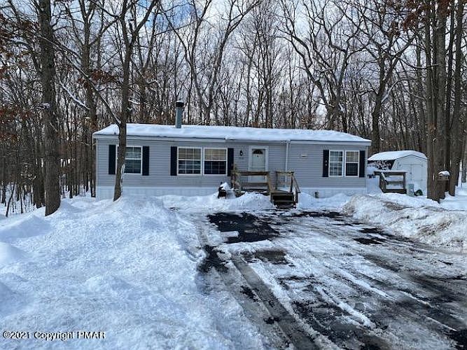 Offering 3 bedrooms, 2 baths, cozy Livingroom with gas fireplace, and nice size kitchen. Home is located in a friendly, quiet community. Not too far from Route 80 and close to Pocono Attractions. There is a $550.00 per month fee that includes the water, sewer, trash, and road maintenance fees. Priced to sell! Taxes are under $1, 000 per year!