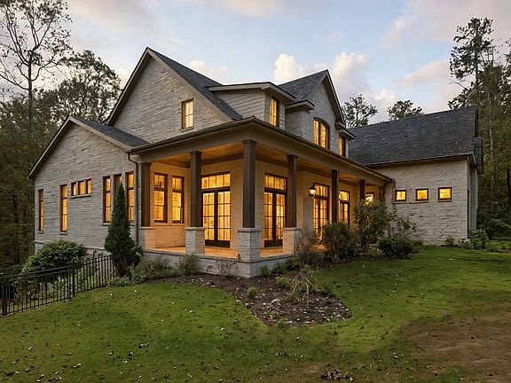 Tucked away on a serene cul-de-sac, this extraordinary estate offers unparalleled flexibility and luxurious living. Gleaming hardwood floors flow throughout a sunlit interior where custom windows, upscale finishes, and curated details create a rare ambiance. The gourmet kitchen is a chef's dream, featuring a gas range, double oven, island with drawer microwave, new Jenn Air refrigerator, walk-in pantry, and an efficient open flow to the adjoining living spaces. The greatroom boasts soaring shiplap ceilings, a striking stacked-stone fireplace, custom built-ins, and access to the covered porch. The main-level owner's suite is a sanctuary unto itself, with abundant natural light, private deck access, dual walk-in closets with custom closet systems, a spa-inspired bath with freestanding tub, frameless glass shower, and separate vanities with built-in storage. The main level also includes a private home office, a formal dining room with built-in bar area, a stylish half bath, and functional laundry room with custom cabinetry and sink, and a 3 car garage. The terrace level presents a complete secondary living space, including a designer kitchen, full bath, cozy fireplace, a home gym or additional bedroom, storage galore, and a private covered porch. Upstairs, discover three additional bedrooms each with their own attached bathroom, a breezy catwalk, and a spacious media room with a hidden ladder leading to a fun loft area. Gather around the outdoor fireplaces or custom fire pit, explore the whimsical treehouse, or unwind in the expansive, fenced backyard—designed for both play and relaxation. Enhanced with new plantation shutters, custom closet systems, and leaf guard gutters, this home is the perfect blend of elegance, comfort, and thoughtful design.