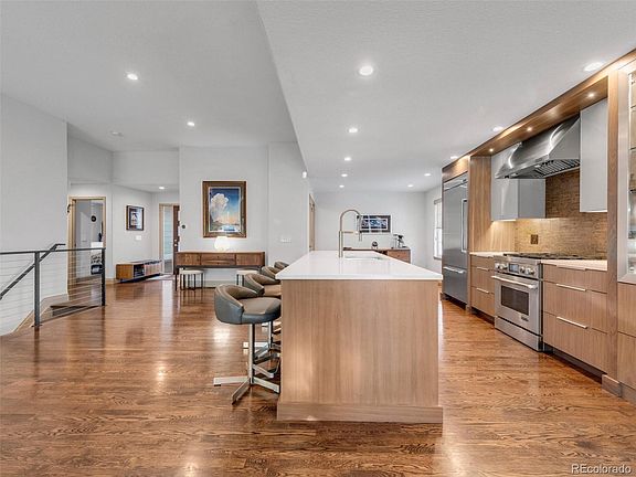 Welcome home to this stunningly remodeled residence! From the moment you step through the solid mahogany front door with reeded glass, you'll be impressed by the attention to detail and high-end features throughout. The main level was remodeled in 2017/2018 and includes hardwood floors in the main living area and primary bedroom and a contemporary look to the open floor plan. The bathrooms and laundry highlight limestone tile. Wool carpet is throughout the second bedroom, primary walk-in closet and stairs leading to the basement. The kitchen boasts custom Omega cabinets throughout, Jenn-air professional appliance and quartz slab countertops. The living room has unique touches including bar cabinets and fireplace. Throughout the entire house you will find Hunter Douglas custom roller shades. As you go downstairs you will love the finished basement (2020). The large space includes a media room, office, area for a bar, Mitsubishi mini split and a 3rd bedroom with a metal barn door, ceiling fan and en suite tiled bath.