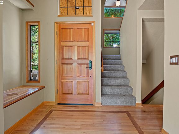 Forest Gnome located on almost 1/2 acre on quiet cul-de-sac. Open main level living & dining room w/ hardwood floors, gas fireplace & access to 1 of 3 decks. Kitchen w/ granite counters, SS appliances, gas range, tile backsplash, island & pantry. Upper level primary suite w/ walk-in closet, double vanity, tile floors & walk-in shower. Lower level includes 2 more bedrooms w/ shared full bath & family room w/ access to 2nd deck. Fenced in yard space for Fido w/ large deck w/ gazebo & ceiling fan. [Home Energy Score = 3. HES Report at https://rpt.greenbuildingregistry.com/hes/OR10204726]