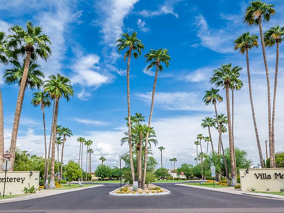 Impressive Remodeled in the Highly Sought-After Retirement/Historic District of Villa Monterey. This Entire Property has been Customized with a New Floor Plan Layout, which gives the Primary Bedroom a Much Larger Bathroom Wonderful Shower with Tile & Glass Surround and a Walk-In Closet. Excellent Floor Plan with 2 Bedrooms, 2 Baths & 2 Car Covered Parking (Very Rare), Carport has Attractive Finished Flooring, Beautiful Custom-Built Kitchen & Bathroom Cabinets, Kitchen Consists of Bay Window (Great for Eat-In Area or a Desk), Kitchen Island, Pantry with Roll Out Drawers, Built-In Spice Racks, Plenty of Storage Cabinets, Stainless Steel Appliances, Crown Molding, Raised Panel Cabinet Doors, Granite Countertops, Tile Countertops (In Bathrooms), Travertine Tile & Neutral Color Carpet Flooring High-Efficiency Windows (Shows Light & Bright), Quality Interior Doors, Security Screen Door (Nice for the Winter Months), Plantation Shutters, Solar Tubes, Designer Arches Throughout, Recessed Lighting, Ceiling Fans, Recoated Roof, Refrigerator, Washer & Dryer Included, Easy Maintenance Desert Landscape (Both Front & Backyards), Enjoy the Relaxing Extended and Expanded Covered Patio with a South Facing Exposure, Wonderful Community Pool & Spa & Much More! Fantastic Scottsdale Location, Convenient to Old Town Scottsdale, Spring Training Baseball, Scottsdale Fashion Mall, ASU, Freeway, Parks, Golf, Bike Paths, Restaurants, and Talking Stick Casino! Add This Property to Your View List! Some of the Furniture is Available for Sale with a Separate Bill of Sale!