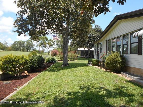 This beauty wont last long. Home is located on the 16th hole, on a lot in a half. Open floor plan with extra computer room. Has an addition added on with new windows. Large pantry, bar area, veranda room. Tape and texture walls, with plywood under the carpet. A/C is newer, along with the vapor barrier. Metal roof along with a sprinkler system. Come on down and enjoy the sun in a 55+ community where you own your own land, with a lot of activity's to enjoy. You don't want to miss out on this!