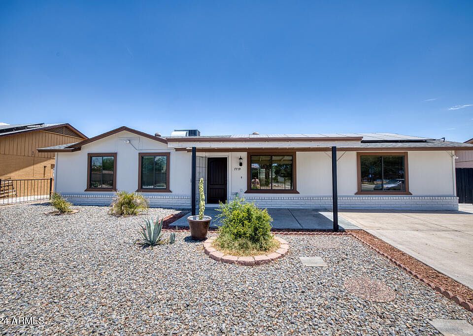Discover this charming Glendale home offering modern upgrades and no HOA fees. Inside, enjoy the seamless flow of tile flooring leading to a beautifully remodeled kitchen featuring granite countertops and white cabinets. Updated bathrooms, newer roof and HVAC Unit. Outside, the spacious backyard with a covered patio and RV gate beckons for outdoor gatherings. Benefit from solar panels for energy efficiency. Located conveniently near amenities, shopping, dining, and major highways, this home presents a perfect blend of comfort and practicality in a desirable Glendale location. Don't miss out.
