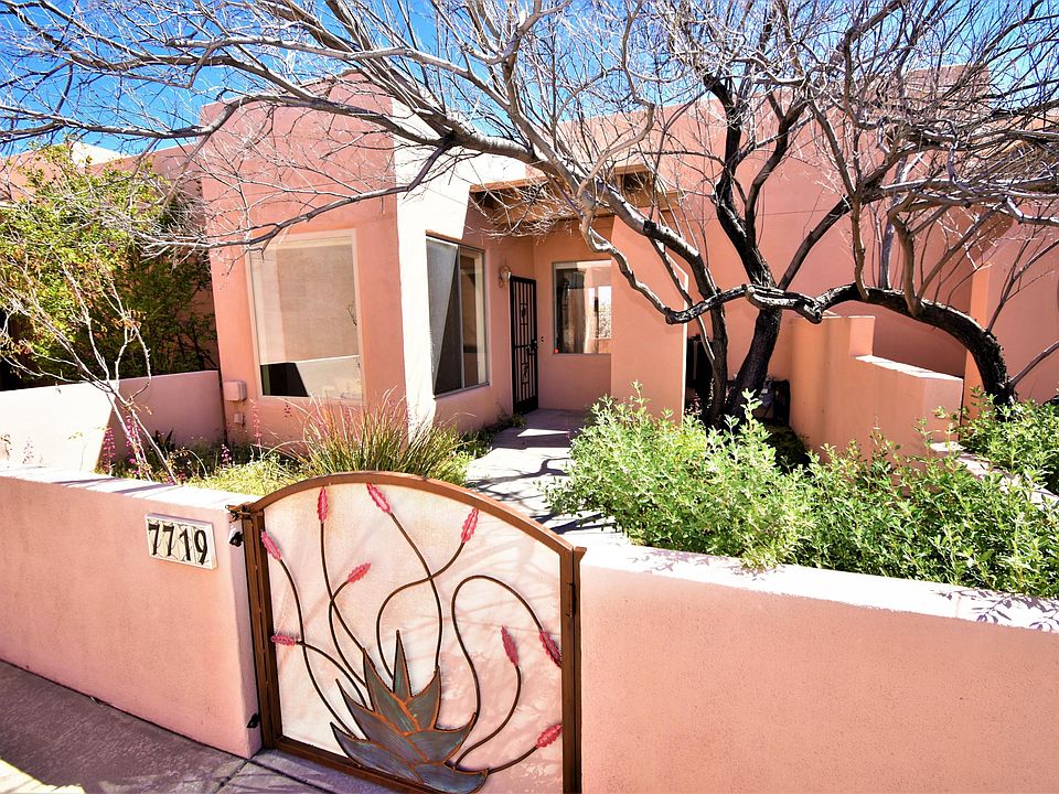 55+ Two bedroom townhouse with SOLAR and FANTASTIC VIEWS! Super bright two bed, two bath townhouse on a quiet lot! Great kitchen with lots of cabinets and storage, and no carpet. Big master with views of the wash and mountains, slider going out to covered patio, and a large walk in closet. Second bedroom is separate for a guest or great for an office. Laundry area and single car garage. Near the year round heated pool and spa, new gym, tennis, low impact exercise, art exhibits, The Arizona Senior Academy (ASA) is the cultural hub of the community with events, concerts, and programs for lifetime learning. Appliances convey as-is, Watch my video.