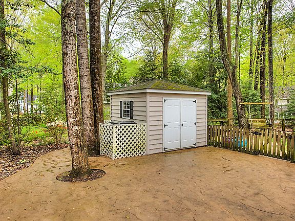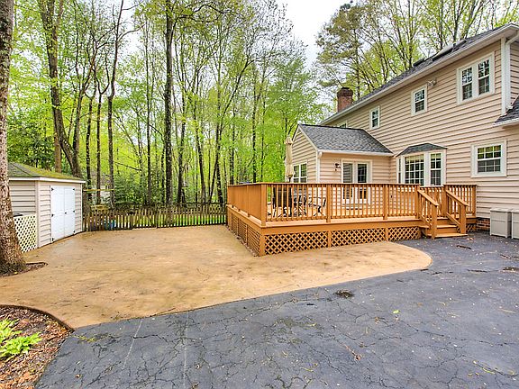 This IMMACULATE stately brick colonial is situated on almost a half of acre corner lot! Lovely plantings, & azaleas all over this mature lushly landscaped yard. Upon entering the foyer you will see the beautiful hardwood floors and crown moulding - to the right is the formal living room with hardwood floors and crown moulding - to the left you will see the formal dining room with hardwood floors, crown moulding, & chair-rail moulding. The kitchen has lots of natural light, white appliances, pantry, & breakfast nook area with bay window - open to the family room, which features exposed beams, all brick gas fireplace flanked with built-in shelving. The bright sun room with cathedral & ceiling fan opens from the family room with French doors, & exits to the deck area & fenced-in back yard. Upstairs are four bedrooms, to include the owner's suite with his & hers walk-in closets & private en-suite bathroom featuring his & hers vanities, separate tub, & stand-up shower with glass door. The attic is walk-up, & has lots of room for storage! There's an attached & detached shed, large paved driveway for direct entry to the attached one-car over-sized garage, & so much more!!