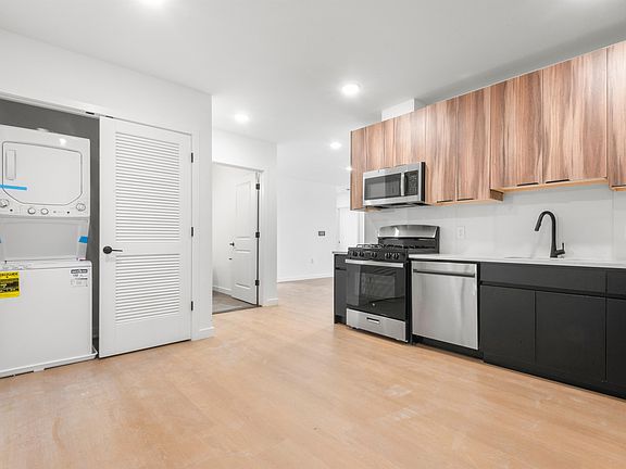 Welcome to elevated living in this brand-new two-bedroom apartment located in a sleek, newly constructed luxury building. Designed for those who appreciate modern elegance and thoughtful details, this home features matte black finishes, light oak flooring, and sun-drenched interiors with breathtaking views of the New York City skyline. The chef-inspired kitchen is both stylish and functional, boasting stainless steel appliances, stone countertops, soft-touch cabinetry, and a hangover island bar perfect for dining or entertaining. A private in-unit washer and dryer adds everyday convenience, while the smart intercom system provides modern security and seamless guest access. Take your lifestyle even higher with access to the building's rooftop deck, where you can unwind, entertain, or simply soak in panoramic city views. Enjoy the ease of an elevator building, the comfort of brand-new construction, and the sophistication of high-end finishes throughout. This is more than an apartment, it's luxury redefined, with every detail crafted for the way you live today.
