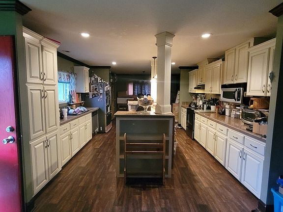 MITCHELL COUNTY COUNTRY LIVING ON 5.72 ACRES ~ HORSES WELCOME ~ WOULD MAKE A GREAT MINI FARM ~ 24X36 WIRED WORKSHOP ~ SMALL SPRING FED FISHING POND ~ TONS OF PRIVACY ~ Beautiful 3-bedroom 2 bath home that has 1920 sqft with a split bedroom floor plan! Spacious Kitchen completed with extra-large island, tons of cabinet and counter space. pantry, window over the sink and breakfast nook! Living room features lots of natural light, vaulted ceilings, laminate floors and a built-in entertainment center! The primary suite has a walk in closet, soaking tub, double vanities and shower! The two additional bedrooms are roomy and have ample closet space! Super laundry room with extra storage space! New HVAC Unit 1 Year Old! Outside boasts Fruit trees - lemon, mulberry, pear, apple, plums! In the back of the property there is a second septic tank, power pole and water lines! The Wired Workshop is the ultimate dream with 2 roll up doors and LED lighting! This home has endless possibilities!