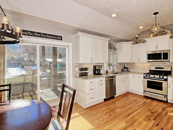 Get there first - this charming home is highly recommended and won't last long. Once you open the door to the impressive and gracious sun room the stage is set for the home that cheerfully welcomes any guest. full of light with pellet stove that provides warmth amongst the terra-cotta tile. Great room for entertaining or just a quiet afternoon of reading. Main level has hard wood floors throughout the living, kitchen, and master bedroom. All the bedrooms are very large with walk-in closets. Country style kitchen has been remodeled with new cabinets, dishwasher, and micro-hood. Gas range/oven, huge walk-in pantry, and new granite counter tops and back splash. Downstairs is all in tile except for the family room which could be a 4th bedroom with large walk-in closet/storage. Two level deck/patios off the kitchen. Big picnic table and hot tub are included. Back yard is a gardeners dream.