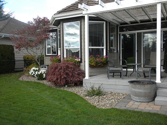 Impeccable Single level on 14th fairway! Hdwd entry, glass storm door, leaded glass door, sidelights, vaulted ceilings, 3 skylights, double gas FP in LR/FR, gourmet kit, granite cntrs, pull outs, island, sunny nook, under cab lights, pantry. Lovely views of golf course but no danger of balls, Trex deck, double doors to vaulted master, ceiling fan, slider to deck, Travertine cntrs, floor, rain shower heads in both baths, jetted tub in master bath, double shower. WIC. Deep sink in utility,new Trane CAC!