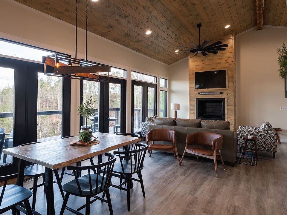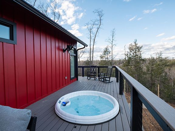 Nestled in the serene Red River Gorge, Kentucky, this newly-built modern cabin offers a luxurious getaway for up to six guests. A Red River Barnhouse features a wrap-around deck with stunning views above the trees, complete with ample seating including a table with four chairs, a conversation set, and two rocking chairs outside the bedroom doors. The soothing sound of a creek running at the base of the three-acre property can be enjoyed from the deck, and adventurous guests can follow the creek to Creation Falls, just a short hike away. The cabin also boasts a sunken hot tub on the deck for a relaxing soak. The cabin's kitchen is a chef's dream, equipped with a gas oven and cooktop, dishwasher, and a large pantry for all your groceries. Tiled walk-in showers with ceiling-mounted rainfall showerheads add a touch of luxury to your stay. Each bedroom is furnished with a comfortable queen bed and smart TVs for entertainment. Gather around the outdoor firepit or gas fireplace to enjoy your morning coffee or late-night hot cocoa. Additional amenities include a propane grill, washer and dryer, and essential starter packs with toiletries and cleaning supplies. Firewood is recommended to be purchased locally to prevent invasive species. While the cabin offers a peaceful retreat, its location in Red River Gorge provides easy access to a variety of outdoor activities. The famous Nada Tunnel entrance is just 30 minutes away, offering countless hiking trails, rock climbing, fishing, canoeing, kayaking, and more. Nearby attractions include the Red River Gorge Scenic Byway, Natural Bridge State Resort Park, and Mill Creek Lake for water activities. For thrill-seekers, zip-lining and rock climbing opportunities abound, and families can enjoy the Kentucky Reptile Zoo and kayaking through limestone caves. Check-in begins at 4 pm and check-out is at 11 am. Arriving early or departing late will incur additional charges. Smoking is permitted outside only, and pets are not allowed. No events, parties, or large gatherings are permitted. A minimum charge of $350 per pet will be applied for unauthorized pets. The cabin is located in a heavily wooded area, and guests may occasionally experience weather conditions or power outages beyond the host's control. The hosts strive to maintain the hot tubs in perfect condition, but mechanical issues may occur that cannot be resolved quickly in this remote area, and no refunds are provided for such occurrences.