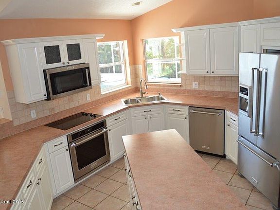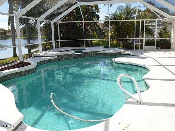 The Falls At Sheridan, a Gated Cmty of W. Melbourne! Lakefront 4-be, 2-ba, screened pool & spa, truss porch, fireplace & 2-cg., an open floorplan w/volume ceilings, lighted plant shelves, ceiling fans, wood, tile, carpet & laminate floors. Layout: Living Rm, Office, Open Kitchen; an island w/cabinets/electric, breakfast bar, breakfast area, pantry & 5-month new Kitchen-Aide stainless steel appliances; built-in microwave, dishwasher, convection oven, refrigerator w/bottom freezer & cook top, Family Rm w/fireplace & access to truss porch/pool, Master Bedroom his & her closets, Master Bath w/2-sinks, garden tub, separate shower & toilet, 3-additional bedrooms (3-be has a loft) & hall bath. Other Features: New roof, new interior paint & carpet, irrigation system, storm shutters & dog run.