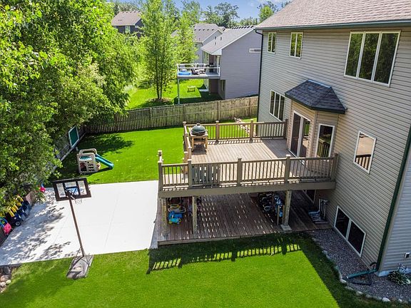 Lovely spacious two story in Bridgewater on a quiet dead-end street not far from the park. Great curb appeal w/ a pretty front country porch. You will love the large deckoverlooking the treed back yard, the rock slab along the side of the garagefor additional parking, the large patio & the fenced-in back yard w/ turffor green grass all year long. Walk into this graciously sized home w/ aformal dining room that could easily be an office or home schoolroom, living room w/ a gas fireplace & Acacia hardwood floors. Large kitchen w/ island,coffee bar, stainless steel appliances, hardwood floors & a laundry room right off the garage. Four spacious bedrooms canbe found in the upper level. The master bedroom has brand new carpet, two walk in closets & a private bathroom with separate tub and shower. Laminate floors in two of the upper bedrooms & 3rd has antimicrobial vinyl flooring. Two bedrooms in the lowest level w/ a family room , huge storage room & a 3/4 bath. Welcome Home