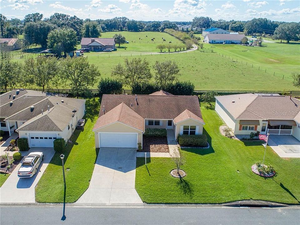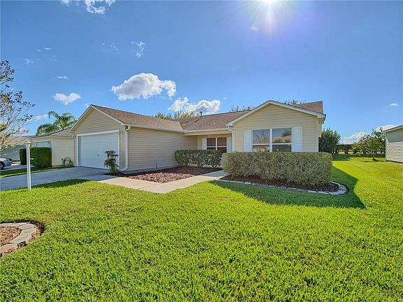LOCATION LOCATION LOCATION! 3/2 AMARILLO located in the highly sought after Village of Lynnhaven. NEW HVAC 2020 Screened in Lanai has a hedge for rear privacy with NO HOUSES BEHIND to enjoy your morning cup of coffee or entertaining guests. One of the most peaceful properties you'll find! Bright, open Island Kitchen with recessed lighting, GAS range, and a space-saver microwave. This home features a true split floor plan with a spacious master suite, double sink vanity and large walk-in closet on one side and guest wing for visitors on the other side. FIVE ceiling fans (3 bedrooms, living room, lanai). Also features Vaulted Ceiling and Indoor Laundry Room. The generous 2-car garage has a utility sink, shelving and a pull down stairs for easy access to the attic and extra room for storage! Only minutes by cart to 466 shopping, restaurants, medical services, softball complex and library to the north, and Lake Sumter Landing to the southeast. A short two minute golf cart ride to the Lynnhaven Pool and a couple more to the Churchill Street Rec Center. Whether you are looking for a full-time residence, a snowbird residence, or an investment property, this home and location are ideal and ready for occupancy. SELLER MOTIVATED! Quick close possible! Measurements and square footage are approximate therefore not guaranteed. Buyer to verify all room dimensions.