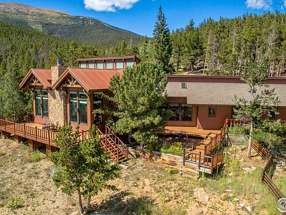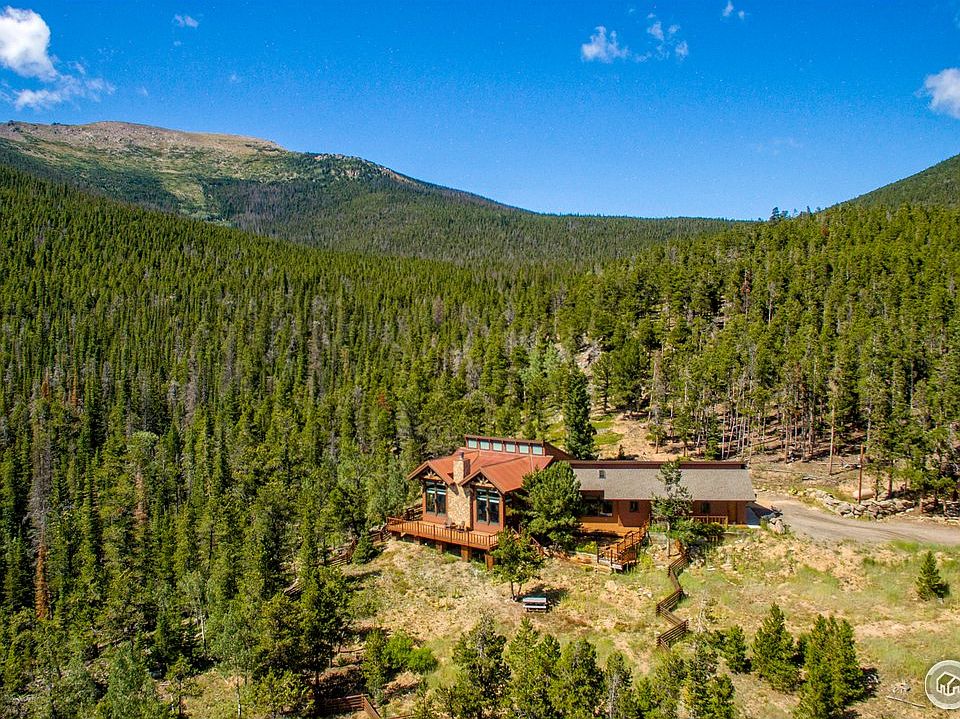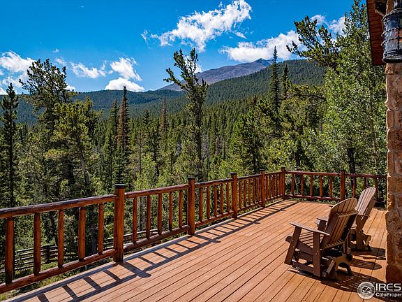 Spectacular end of road privacy on 6 acres BORDERING Rocky Mountain National Park. Saturated with sunshine and top of the world views, the extensive renovation was done with inspired vision, design and stunning architecture to create energy and grace for this 3045sf retreat. Expansive walls of windows perfectly frame and allow the natural mountain landscape to take center stage, turning it into living artwork that fills every room. Soaring cathedral ceilings lined with character-rich timbers adds visual warmth while the stunning native stone fireplace welcomes you into the greatroom. The kitchen is a chef's dream; open, spacious and perfect for entertaining. Extraordinary land speaks to you, with it's native forest and cascading InnBrook, just down from the house. Enjoy endless hiking right out the back door, with RMNP as your closest neighbor...